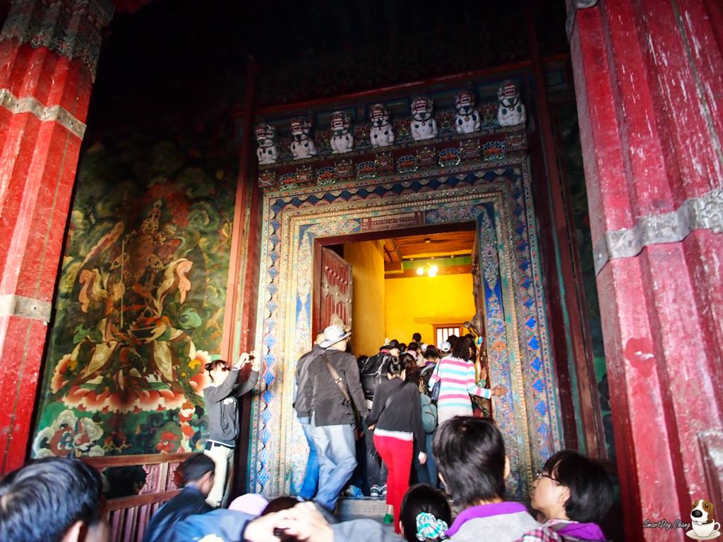 布達拉宮的內部是不能拍照的,至於內部長怎樣,實在是難以形容,有數座超高的佛塔用金子打造,上面鑲滿了寶石,只要有地方就有唐卡,有堆繡,看都看不完,還有無數佛經;或許是現任達賴喇嘛有來過台灣的關系,原本超時就罰錢的布達拉宮,我們⋯⋯明明有超時了,也沒有罰我們錢,而且喇嘛還握了每位團員的手,說希望台灣的朋友能再來,當然,這些話是回來才能說,在當地團員們可是不敢亂說話的