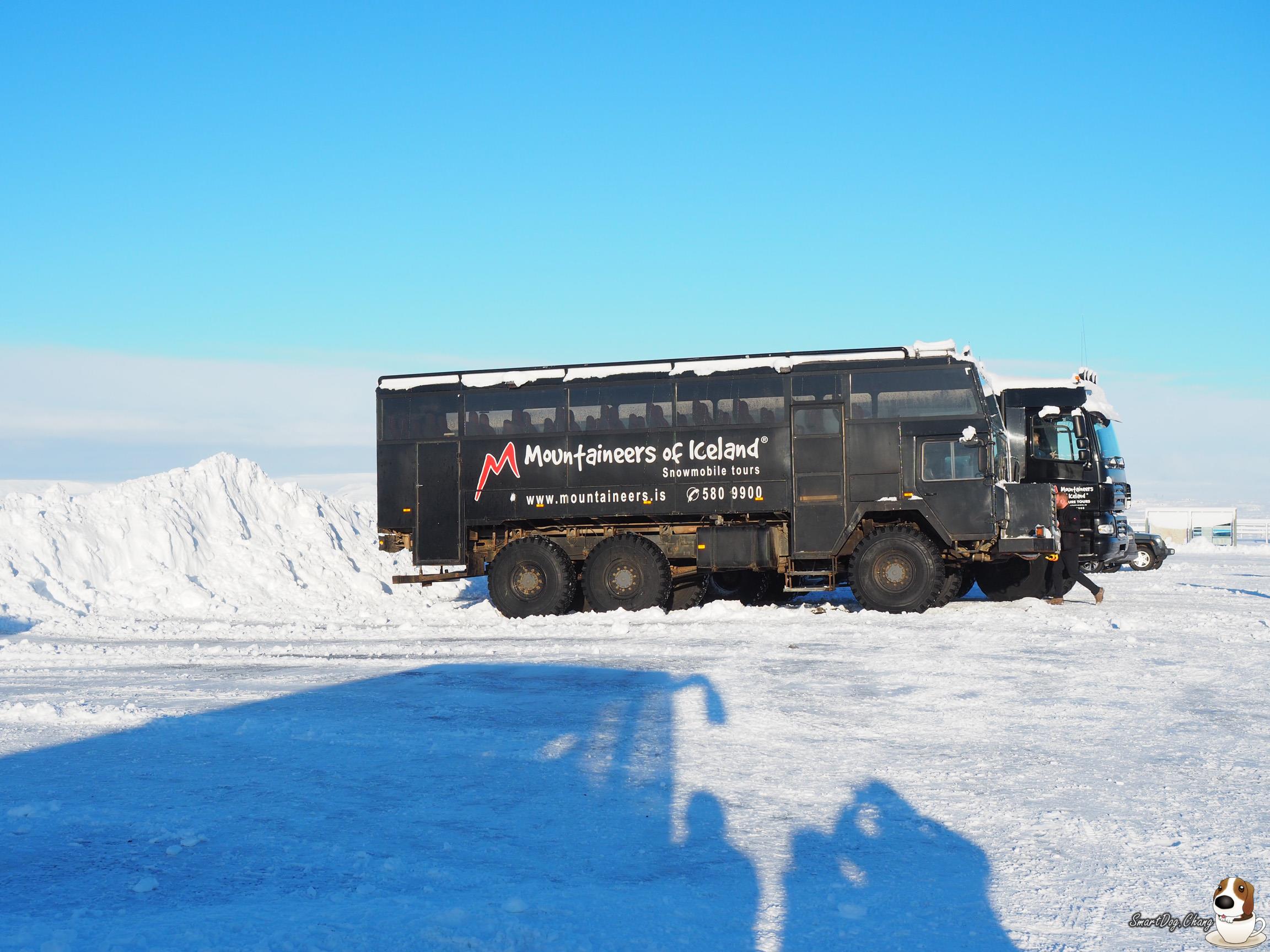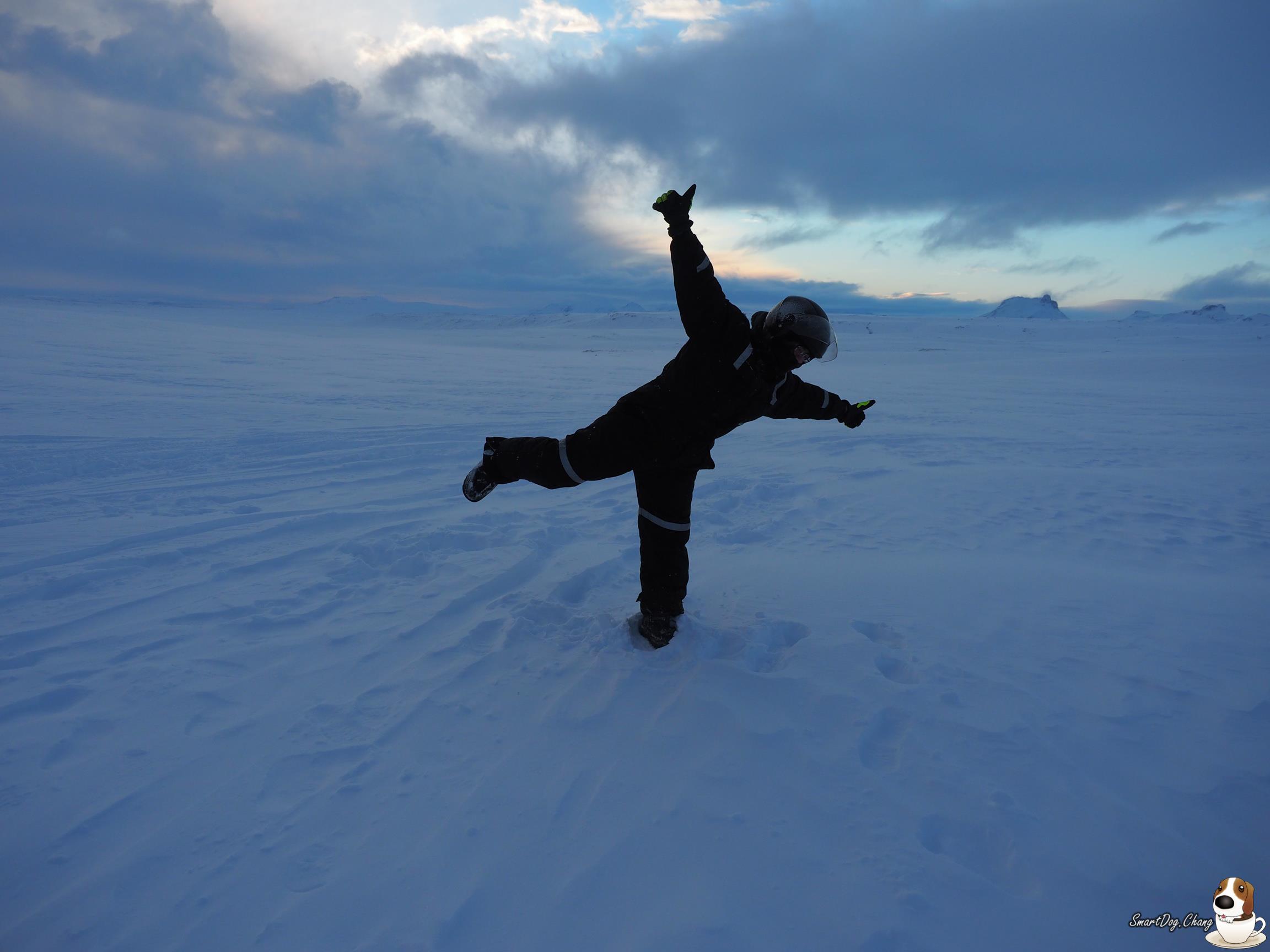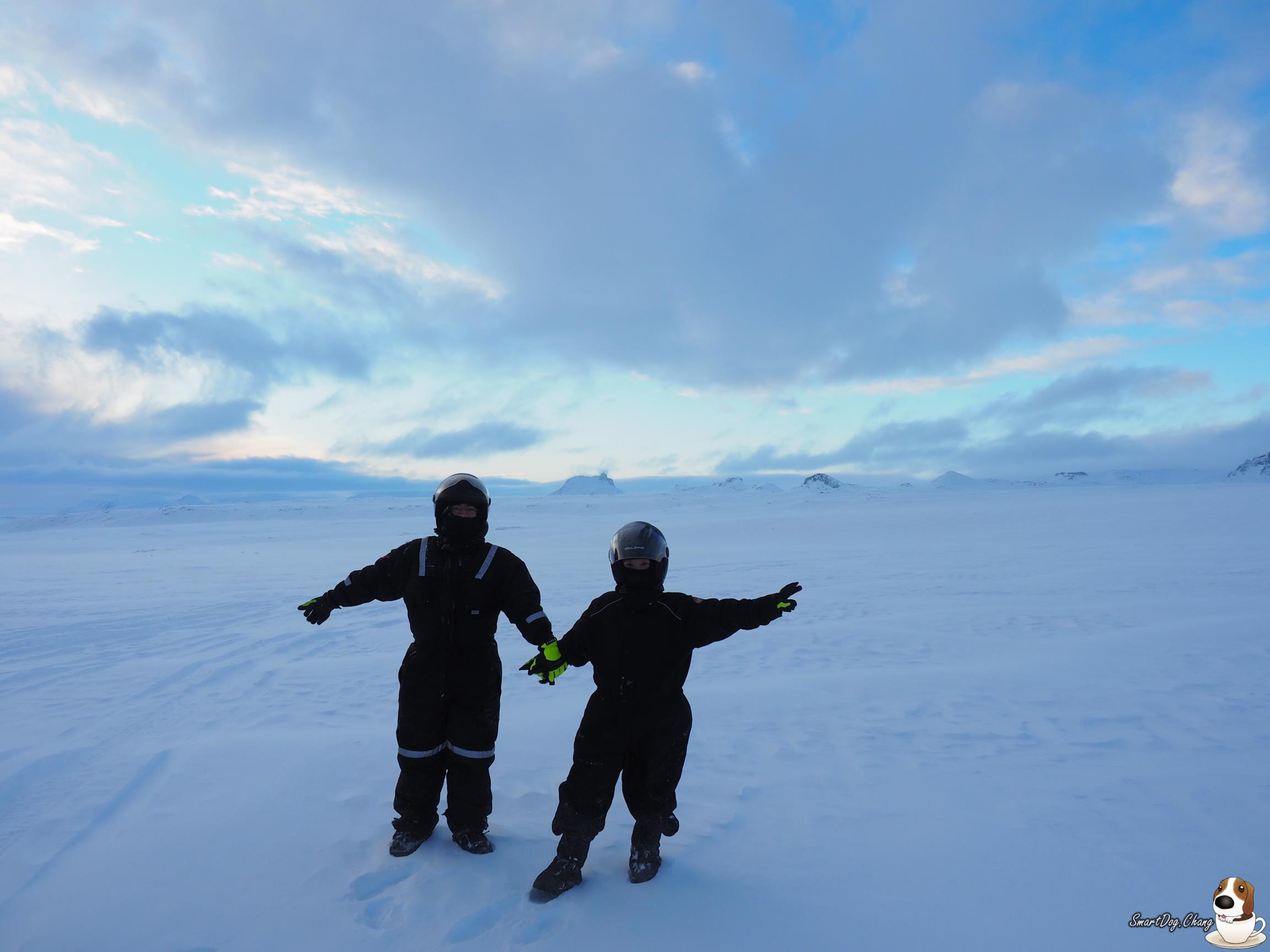 看完 Gullfoss 瀑布!來到了今天重點,在冰川上騎雪地摩托車,小弟沒騎過重車,第一次騎,就是騎雪地的 XD