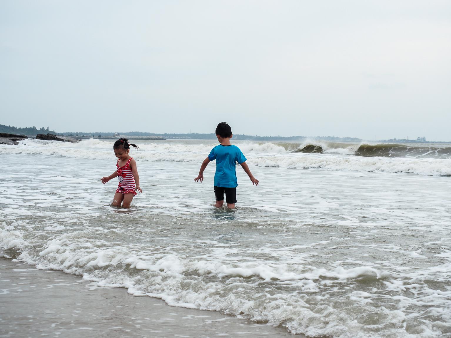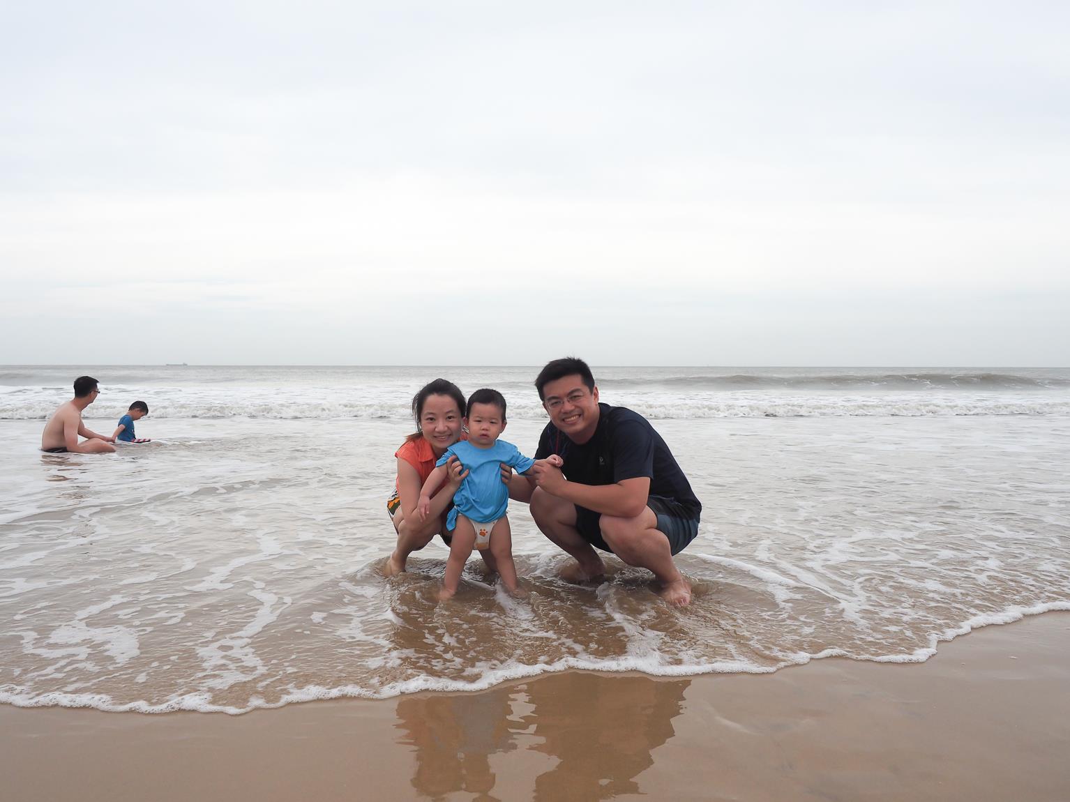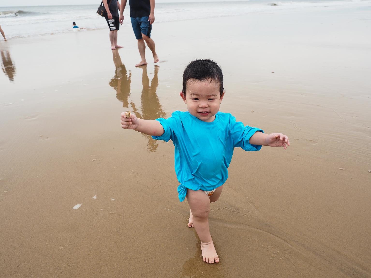 ↑因為昨天傍晚的天氣風太大,沒有讓小朋友好好的玩到水,所以今天一早,第一件事就是帶小朋友們來到成功海灘