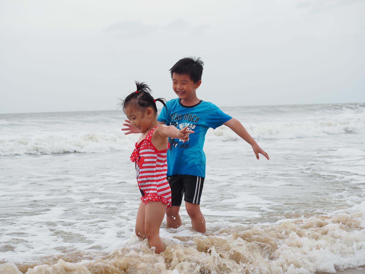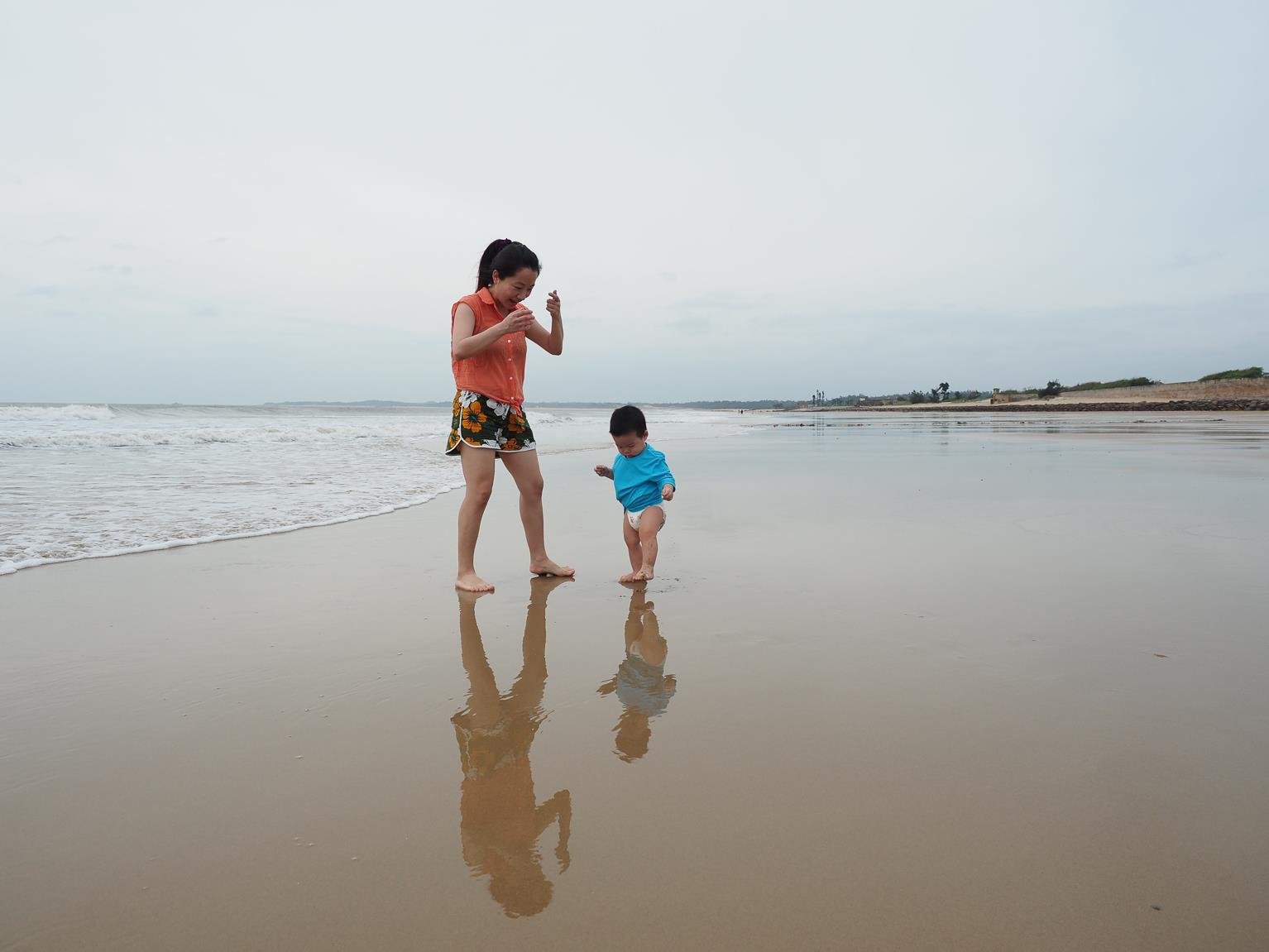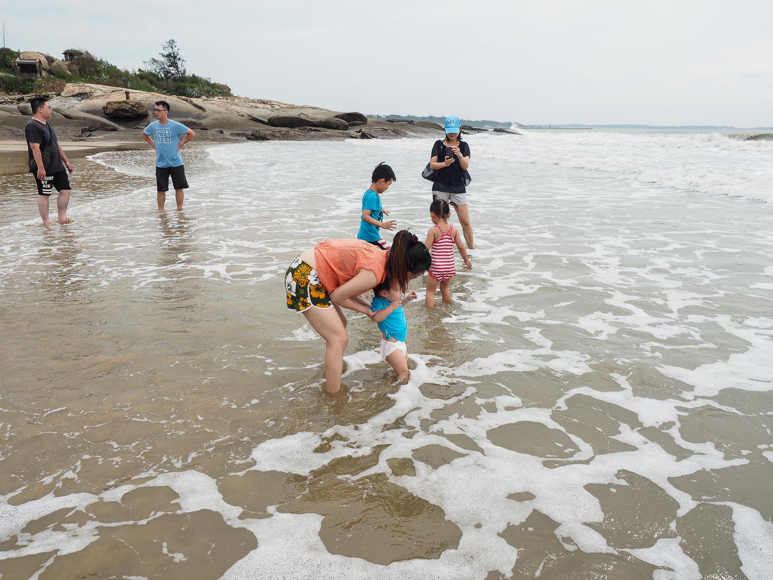 ↑因為昨天傍晚的天氣風太大,沒有讓小朋友好好的玩到水,所以今天一早,第一件事就是帶小朋友們來到成功海灘
