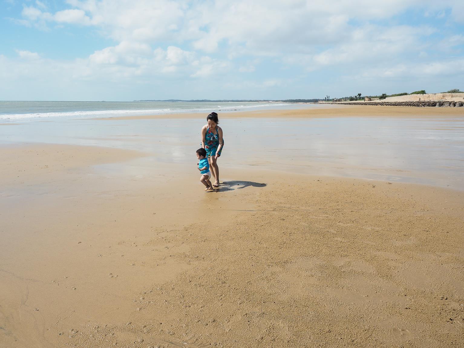 2017年10月10日-金門家庭日(下) 金門 2017-10-13撰文 2017-10-14更新 因為鴻哥一家已經先坐飛機回台了,最後一天是屬於狗蛋一家獨自的家庭日,對於來過金門很多次的我,也是要想想該去哪走走~~ ↑第一站當然還是來海邊,海邊反正來多少次都不會膩~~ ↑今天的成功海灘比起昨天,人又更少了 ↑成功海灘 ↑成功海灘 ↑成功海灘 ↑今天可能是比較有太陽,海灘上的小螃蟹都出來了 ↑海灘上的小螃蟹都出來了 ↑鴨子抓了一隻給狗蛋觀察 ↑中午在良金吃牛肉麵 ↑良金吃牛肉麵 ↑良金吃牛肉麵 ↑民俗文化村 ↑民俗文化村 ↑幫女王來張氣質照,雖然相片中的背包其實是尿布和狗蛋的水杯~~ ↑裡面還是有人在住,這家人在曬洛神花 ↑王家與板橋林家是親威,房子自然也是帶品味的 ↑大戶人家 ↑這天的太陽很大,為了這張相片我拍好多次才勉強可以看 ↑新娘房 ↑中庭 ↑新房 ↑廚房 ↑新房 ↑裡面不止是建築,還有不少文件收藏 ↑這是在曬一條根 ↑女王 ↑臭狗蛋 ↑民俗文化村 ↑閔式的建築真的是很好看啊~~ ↑狗蛋一直不配合,要拍照就只能這樣了 ↑民俗文化村 ↑獅山炮陣地,來看八吋榴 ↑八吋榴 ↑山洞裡很涼快 ↑傳說中的外島金剛,八吋榴彈炮,有夠大支啊~~如果來的時間對的話,還會有人表演炮操喔! ↑與八吋榴合照 ↑炮口 ↑溪邊海水浴場,這是被遺忘的海灘,這個海灘比起成功與后湖,沙更細,水更藍,但可能是因為地點的原因,目前已沒營業,沒有廁所與水可以洗沙子,玩起來不方便 2017 金門之旅 End~~ 明年沒意外會再回來走走~~