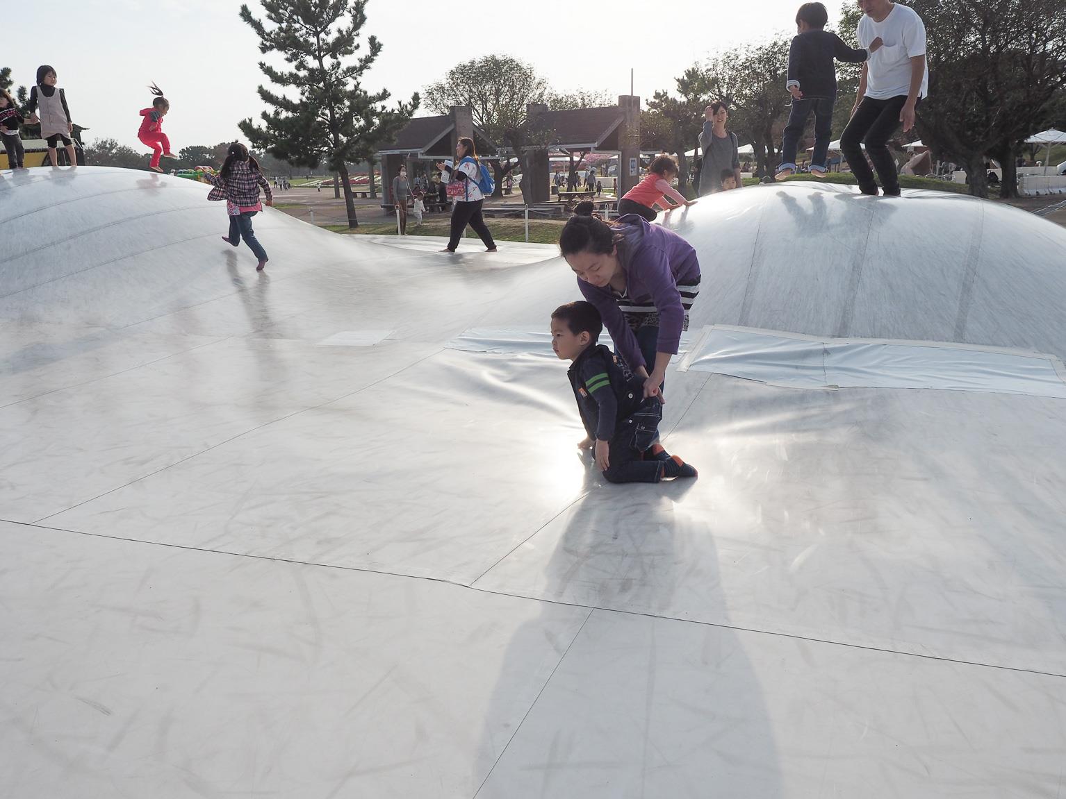 看完天守閣之後,時間其實已大大超過了原本預定的停留時間,其實大家都在考慮接下來是不是該按行程去海之中道公園,原本都要放棄了。後來想到說如果不去的話,可能會少了很多小朋友的往開心的畫面,心一狠!決定中午不吃了,就便利店隨便買個麵包什麼的,趕去海之中道公園!